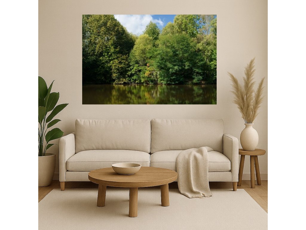 Obraz je ideální pro ty, kteří hledají uklidňující přírodní motiv do interiéru. Hodí se do obývacího pokoje, ložnice i pracovny, kde navodí harmonii a pocit ticha u jezera.