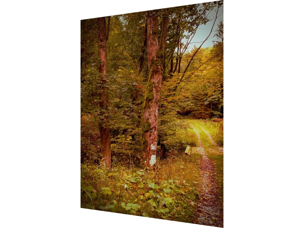 Fotoobraz s motivem podzimního lesa a turistické cesty. Teplé barvy vnese do interiéru klid a kouzlo přírody.