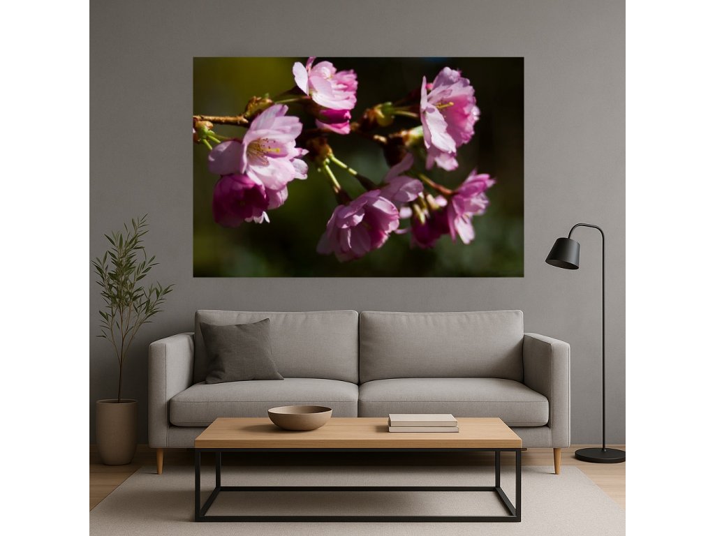 Tento fotoobraz zachycuje jemnost růžových třešňových květů, které vynikají na tmavém pozadí. Tento kontrast zajišťuje, že každý detail květů je dokonale zvýrazněn. Třešňové květy, v plné kráse a jemnosti, přinášejí do vašeho prostoru pocit klidu a přírodní elegance. Ideální pro ty, kdo hledají do svého interiéru kousek jarní krásy a jemnosti. Fotoobraz je vyráběn na zakázku. Odesíláme do 4 pracovních dnů, doručení trvá obvykle 1–3 dny.