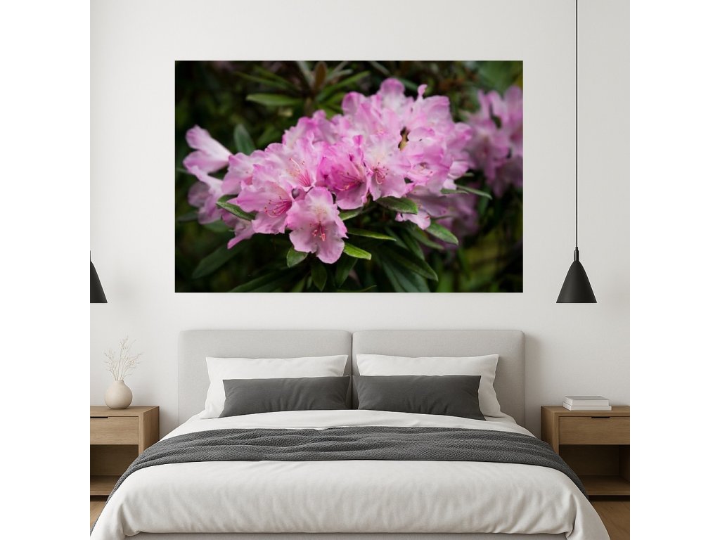 Tento fotoobraz zachycuje jemnost růžového květu rododendronu, který vyniká na tmavozeleném pozadí jeho listů. Kontrast mezi růžovou barvou květu a tmavým pozadím zdůrazňuje krásu a eleganci tohoto rostliny. Tento obraz přináší do vašeho interiéru klid a přírodní krásu, ideální pro milovníky květin a jemného umění. Fotoobraz je vyráběn na zakázku. Odesíláme do 4 pracovních dnů, doručení trvá obvykle 1–3 dny.