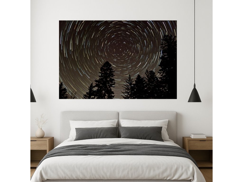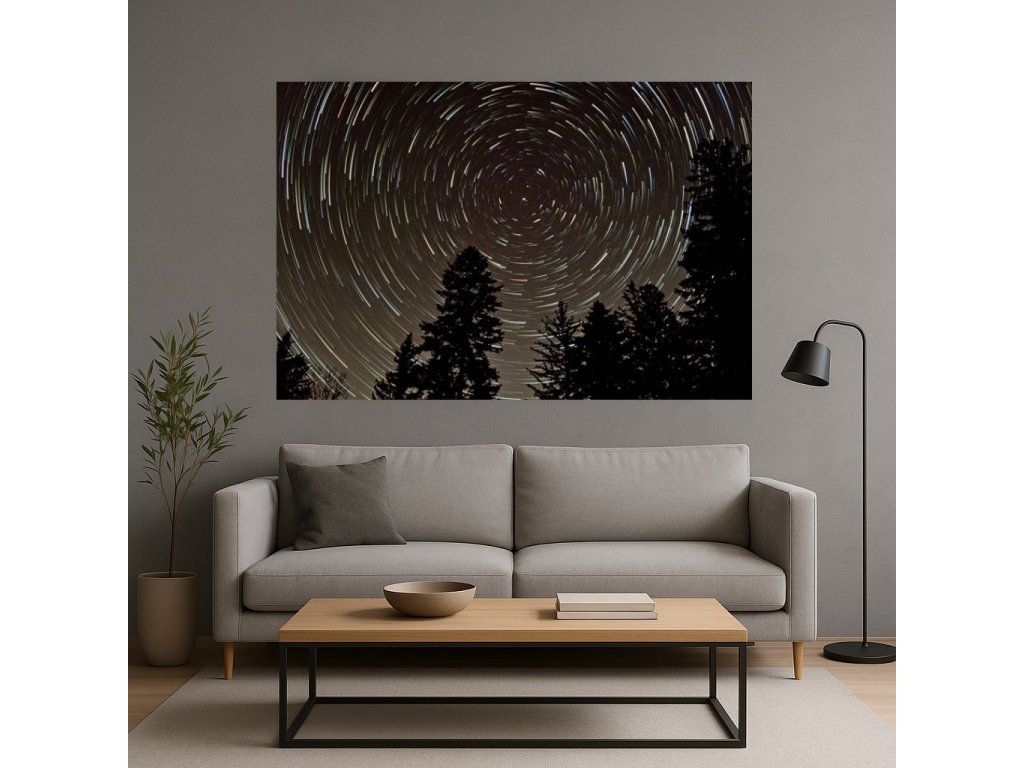 Noční obloha s jasně viditelnou Severní hvězdou a kruhovými stezkami hvězd, vzniklými dlouhou expozicí. Tento záběr zachycuje klidný rytmus vesmíru a připomíná tichý pohyb času kolem pevného bodu. Je to pohled do hloubky noci, kde ticho a světlo tvoří svou vlastní poezii. Fotoobraz je vyráběn na zakázku. Odesíláme do 4 pracovních dnů, doručení trvá obvykle 1–3 dny.