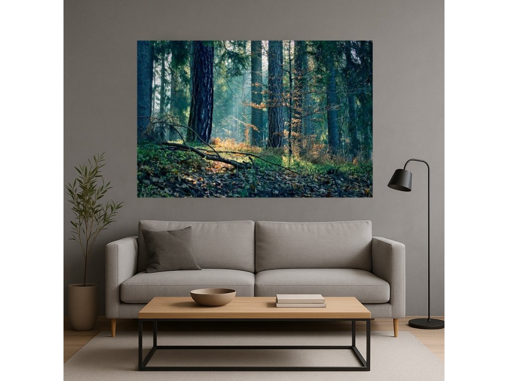 Tento fotoobraz zachycuje magický okamžik v lese při východu slunce, kdy první paprsky prosvítají skrze mlhavý opar a osvětlují stromy, které se tajemně vynořují z mlhy. Tento jemný a éterický pohled na přírodu vytváří dojem klidu a hluboké harmonie. Obraz přináší do vašeho interiéru pocit ranního probuzení a čerstvosti lesa, ideální pro milovníky přírody a tajemné atmosféry. Fotoobraz je vyráběn na zakázku. Odesíláme do 4 pracovních dnů, doručení trvá obvykle 1–3 dny.