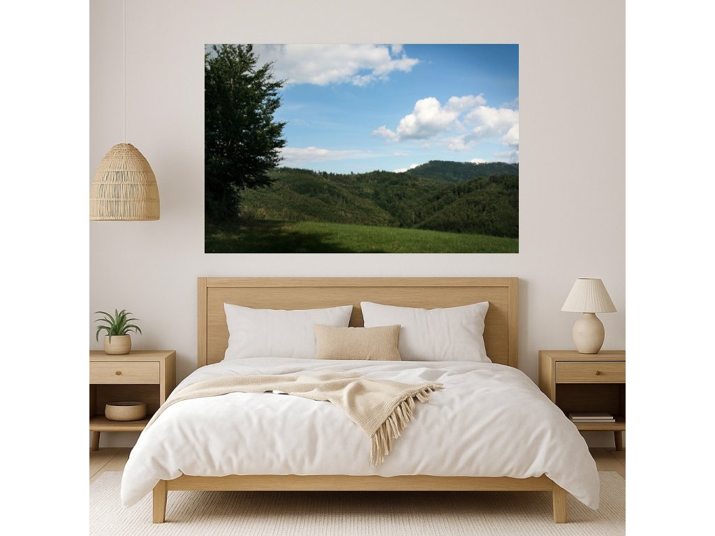 Fotoobraz „Údolí mezi lesy“ vás zavede do poklidného horského údolí, kde mezi stromy vládne ticho a rovnováha. Jemné světlo a přírodní tvary vytvářejí dojem místa, kde se čas zpomalí a kde můžete volně dýchat.