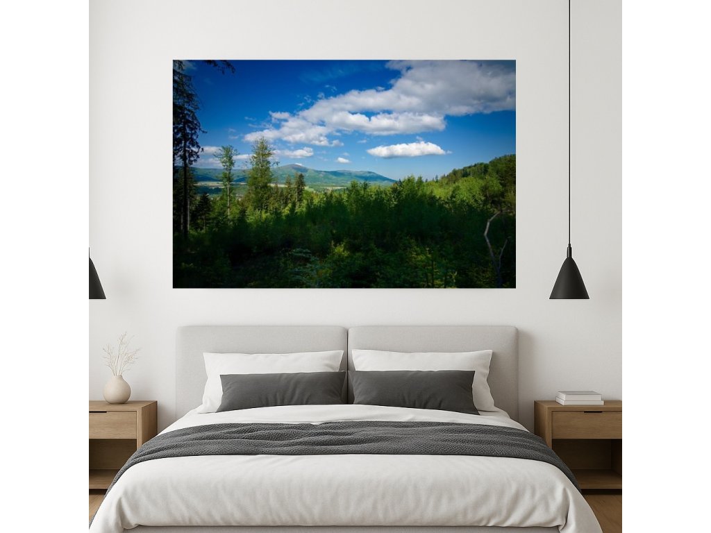 Pohled z lesního stínu na sluncem zalité hřebeny Beskyd v pozdním dopoledni. Bílé mraky plující nad krajinou a hra světla s temným popředím vytvářejí dramatickou, a přitom klidnou kompozici. Fotografie zve diváka ke ztišení a nahlédnutí do prostoru za hranicí stromů — tam, kde začíná otevřenost a světlo. Fotoobraz je vyráběn na zakázku. Odesíláme do 4 pracovních dnů, doručení trvá obvykle 1–3 dny.
